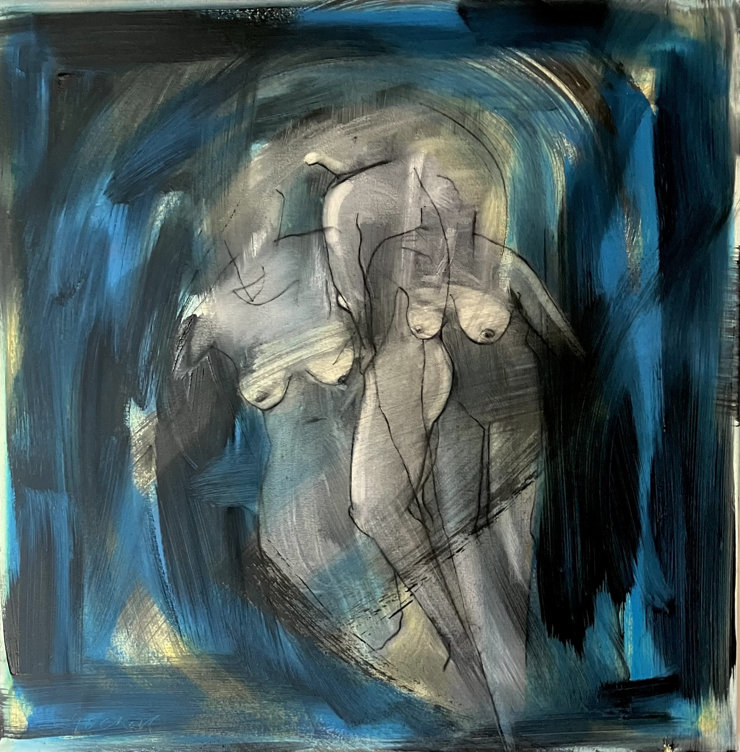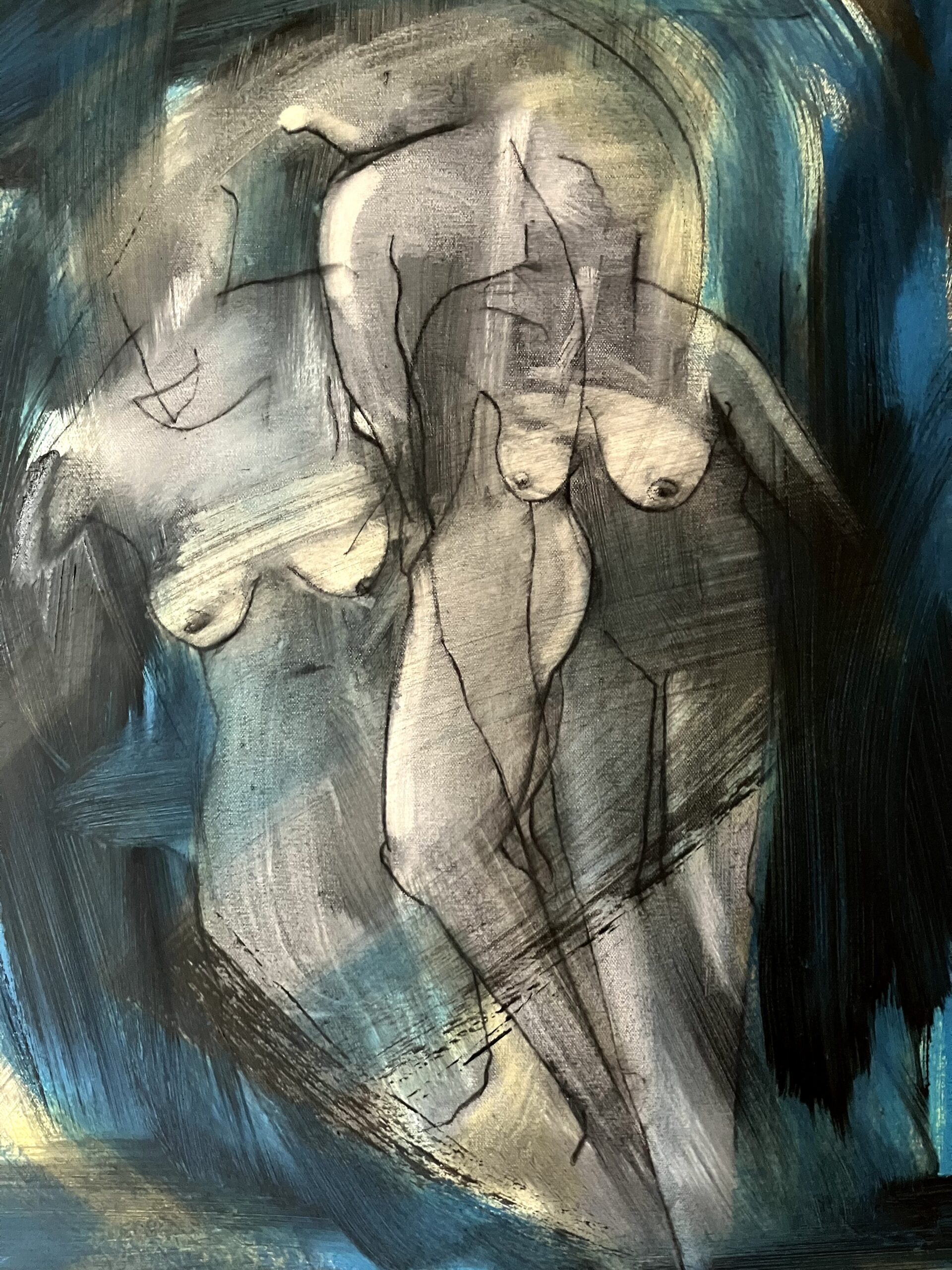 Oil and Acrylic on canvas. Unframed. Ready to hang.