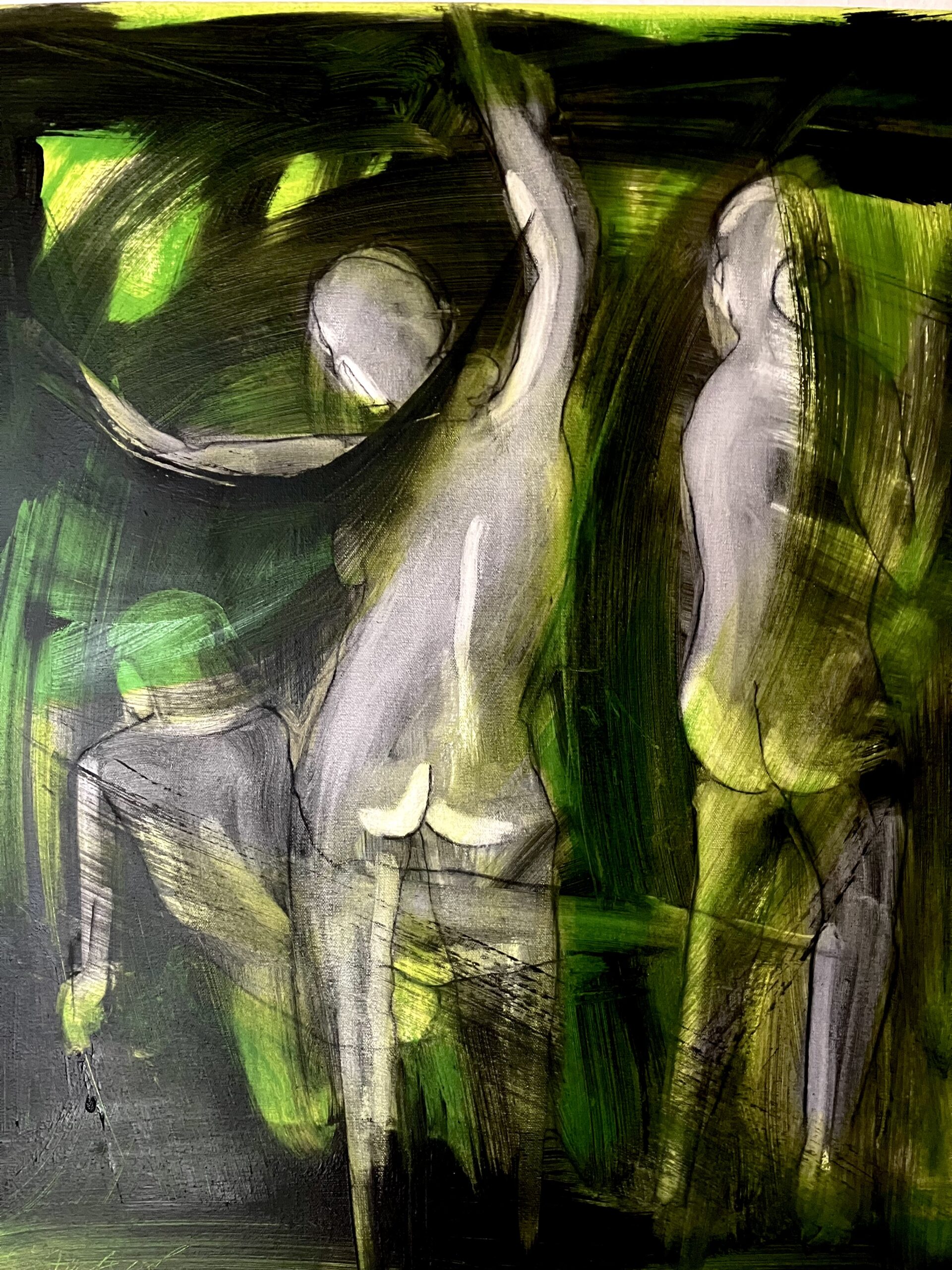 Oil and Acrylic on canvas. Unframed. Ready to hang.