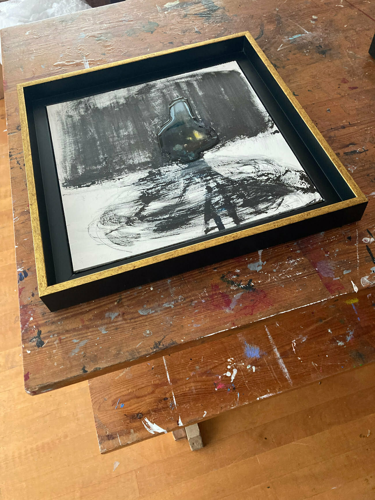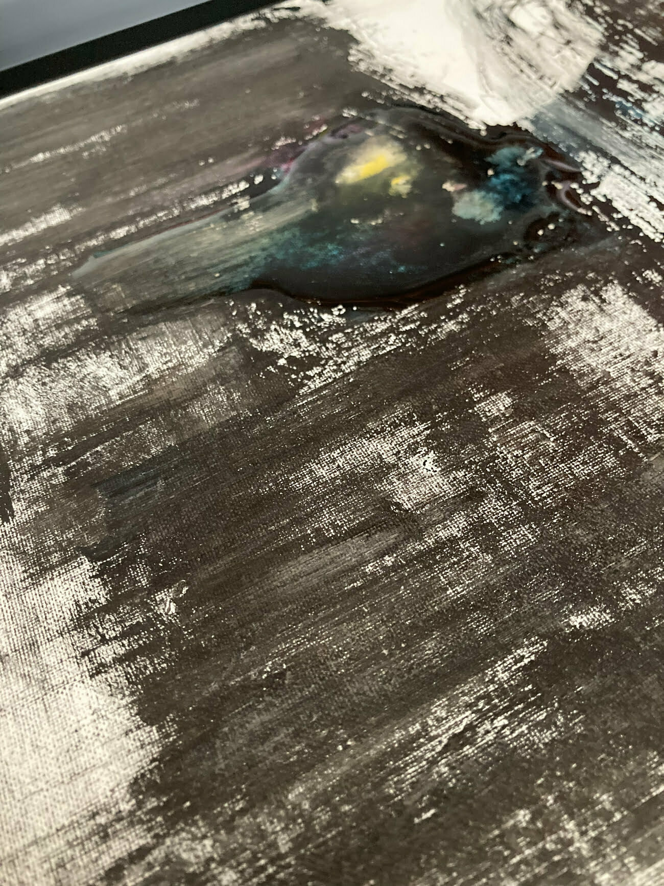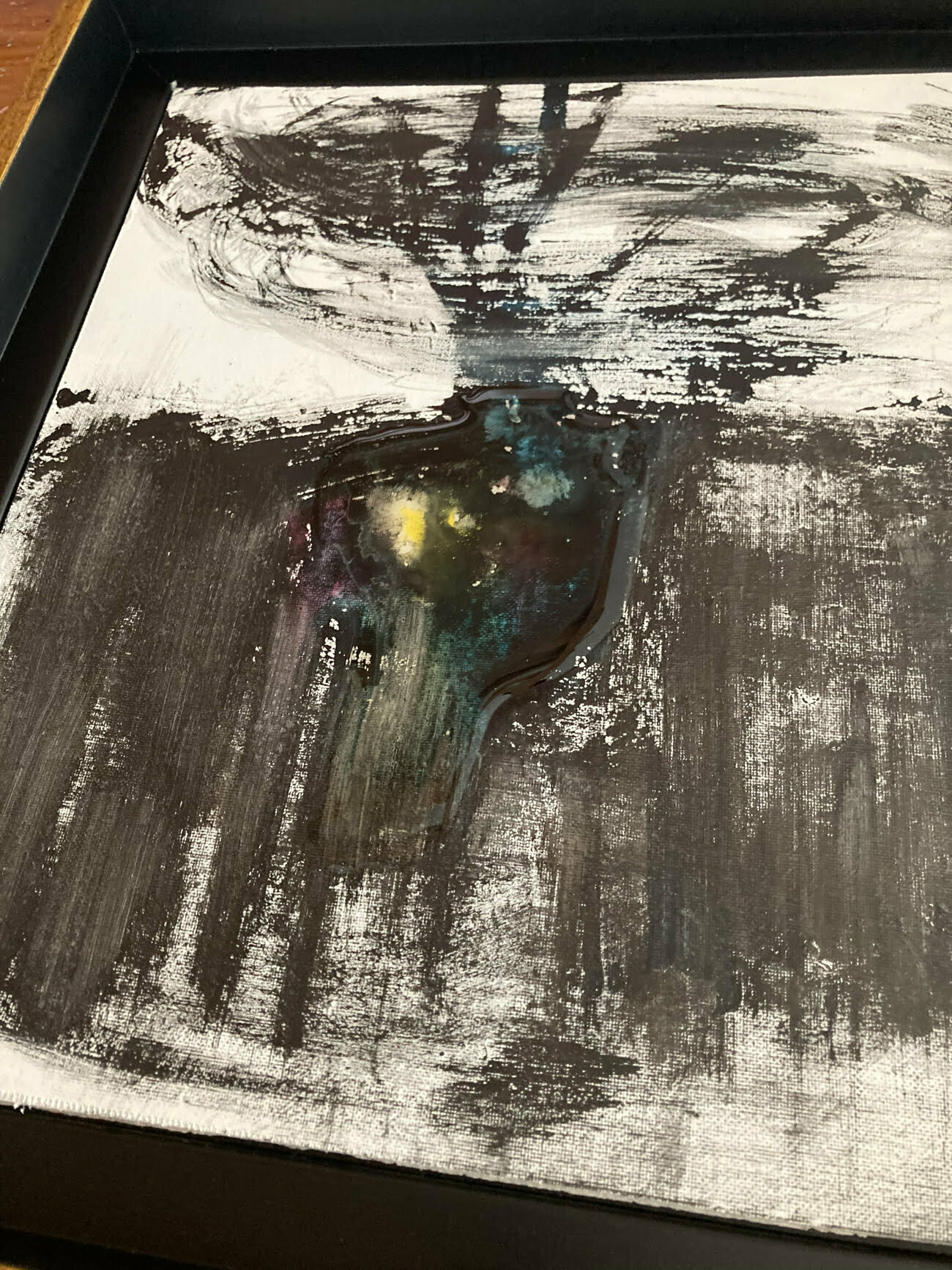 Acrylic ink and resin on canvas panel. Framed. Ready to hang.
