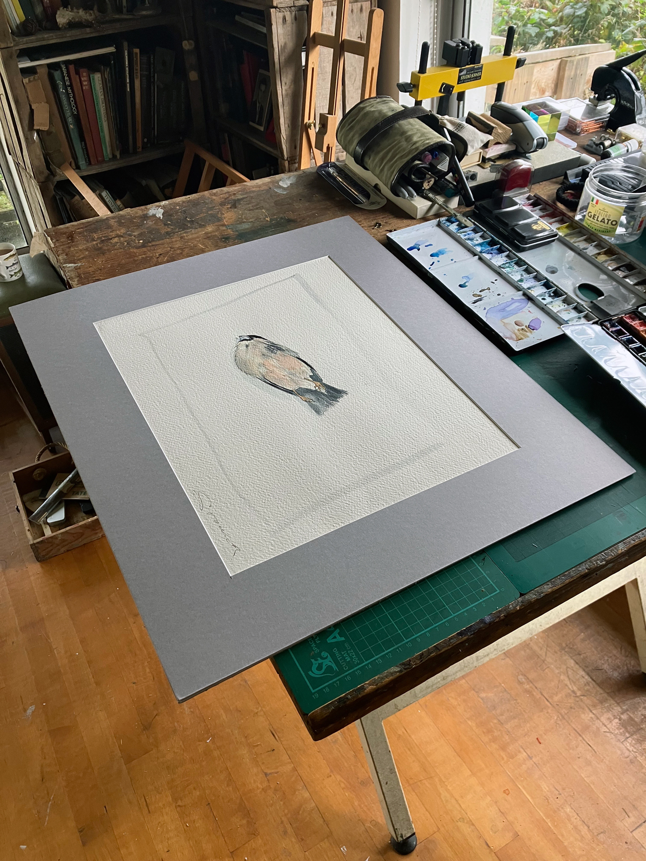 – Presented with a double window mount using 1.5mm ‘Felt Grey’ White Core Mount Board (ISO 9706 compliant).